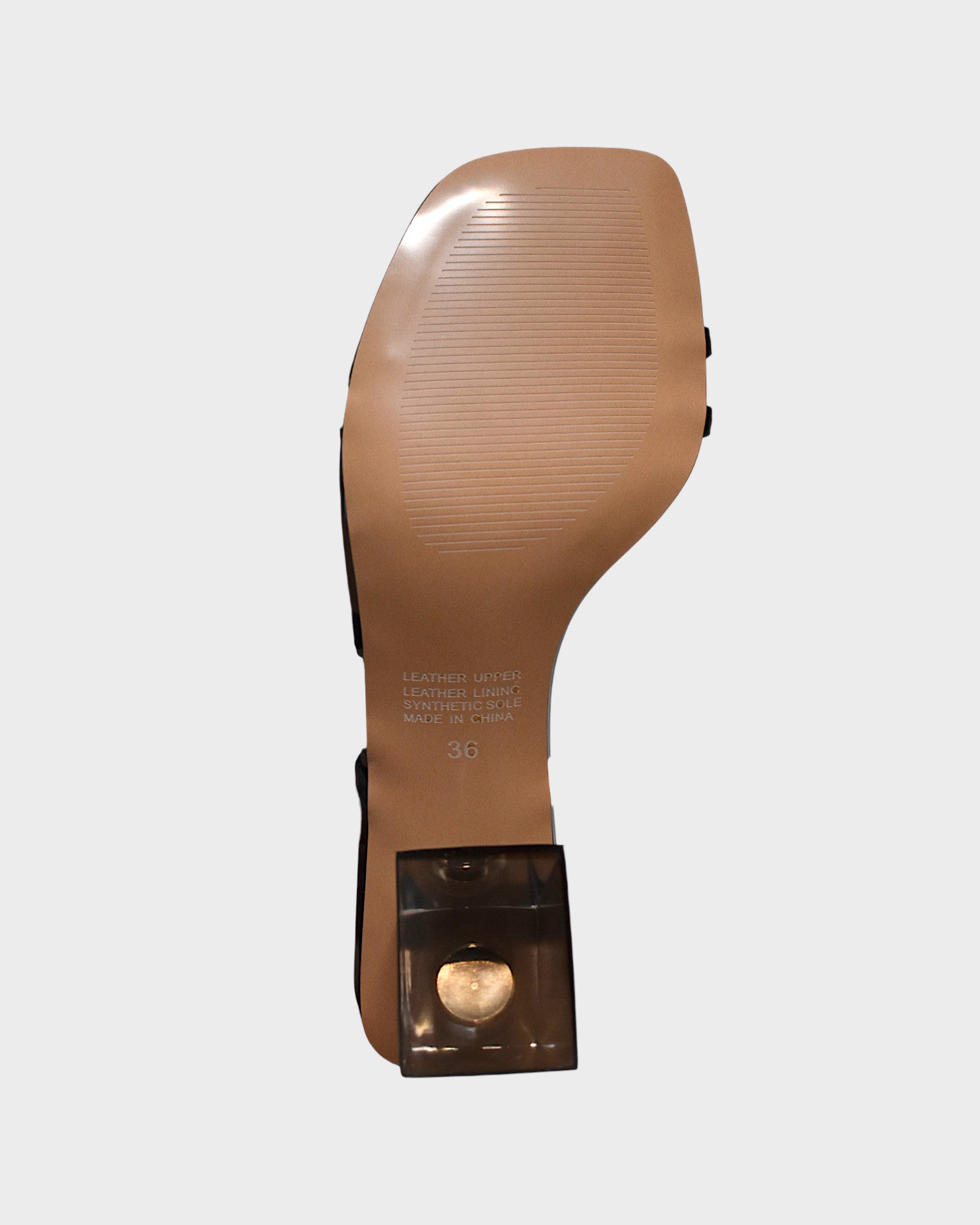 2" clear block heel (The heel may appear clear or black depending on the viewing angle)