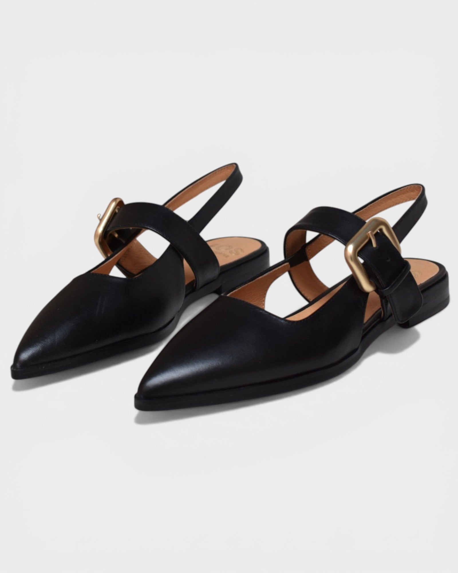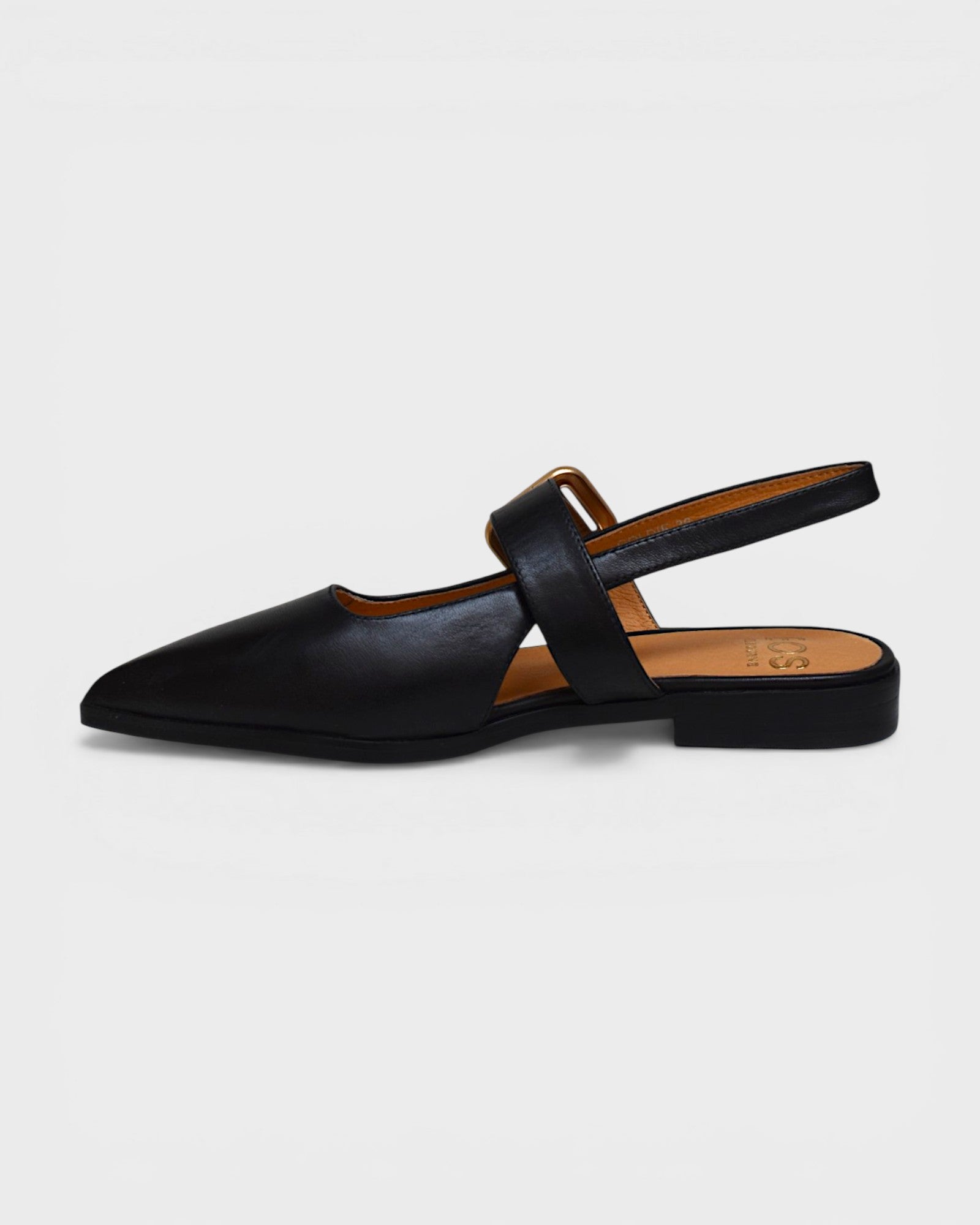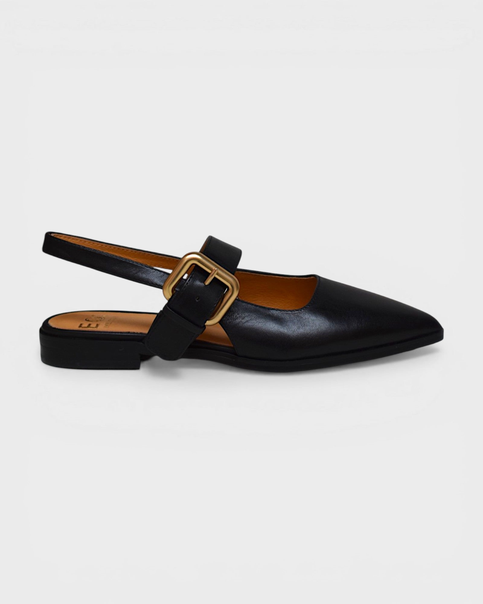 Slip on slingback with hidden elastic for a flexible fit and adjustable buckle