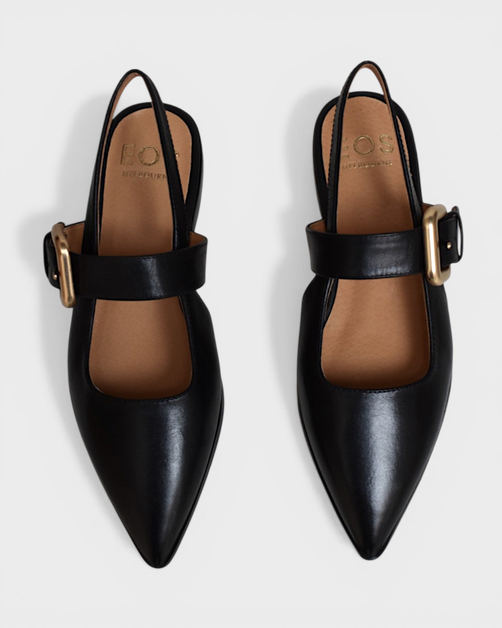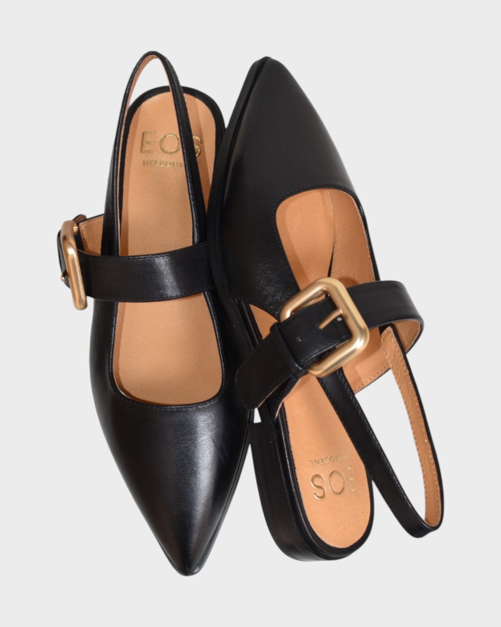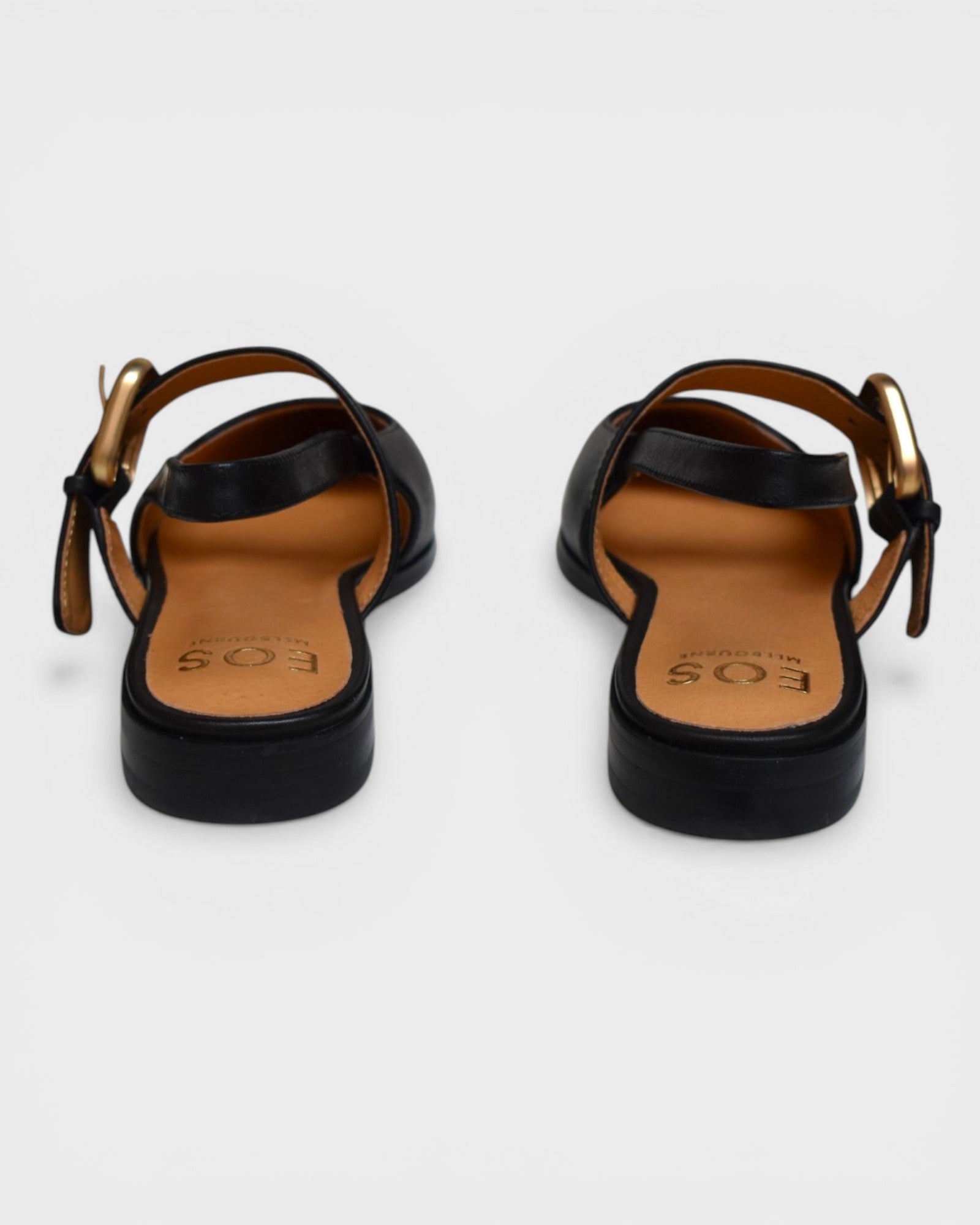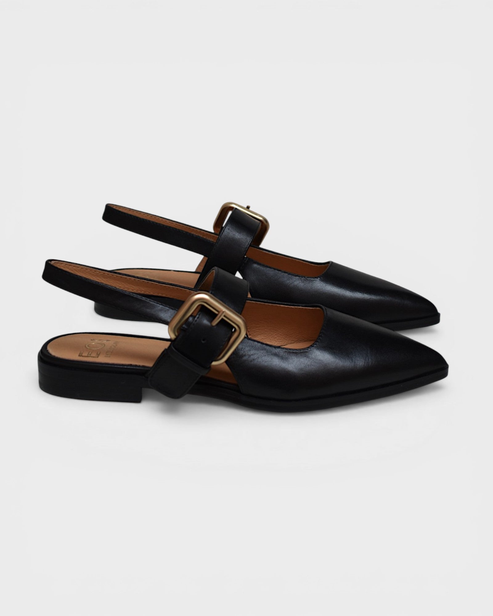 Slip on slingback with hidden elastic for a flexible fit and adjustable buckle