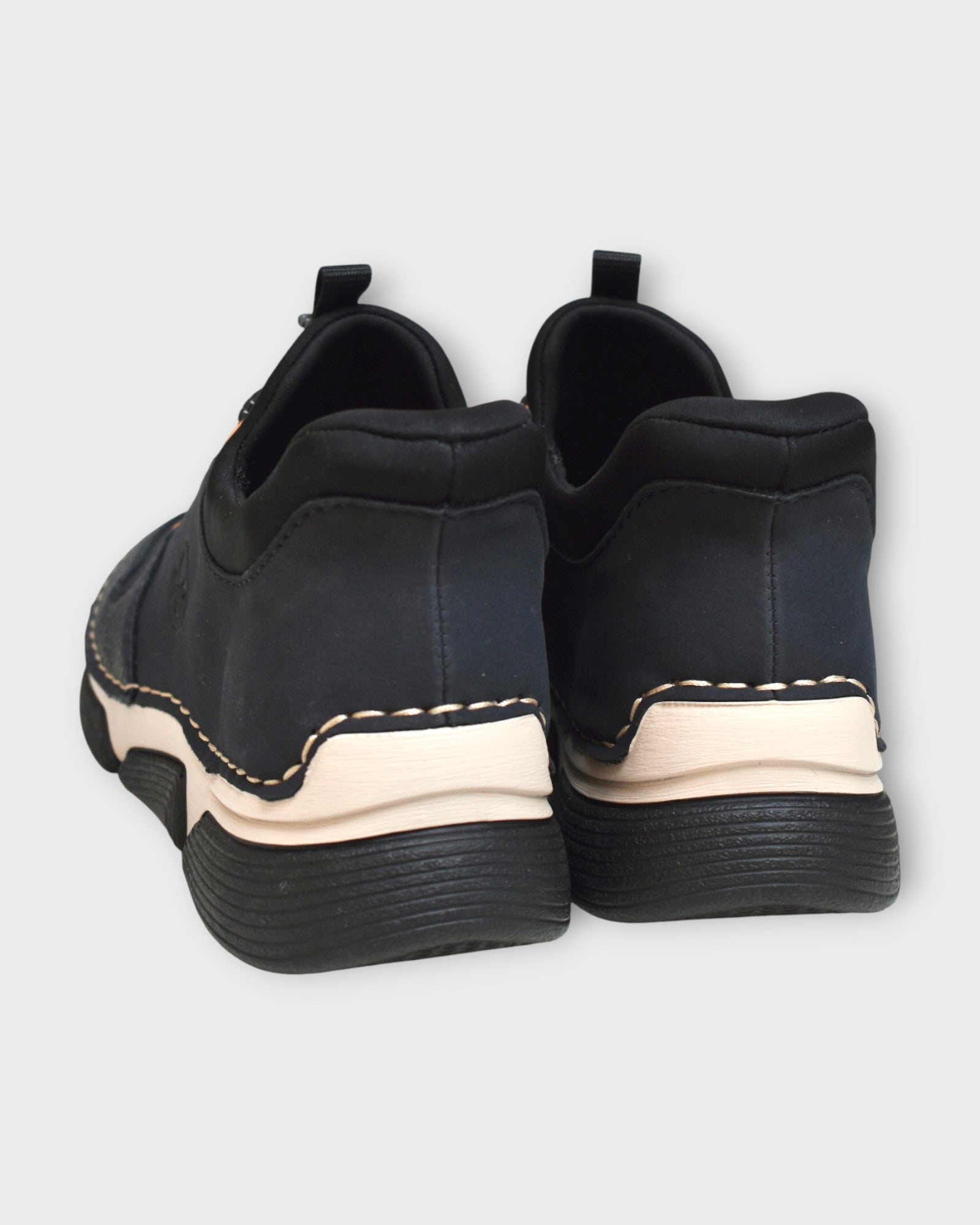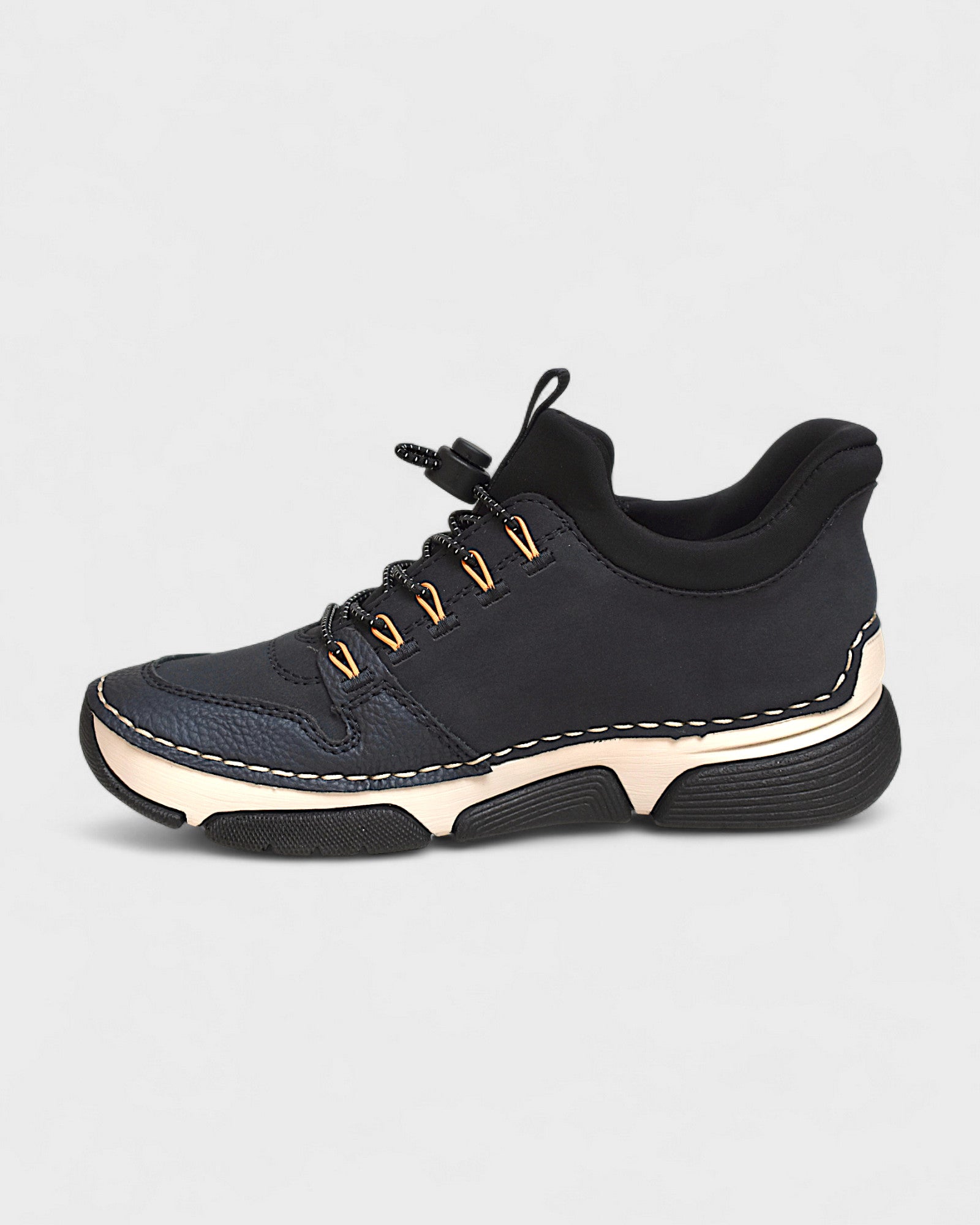 Elastic insert for slip on comfort with adjustable button toggle