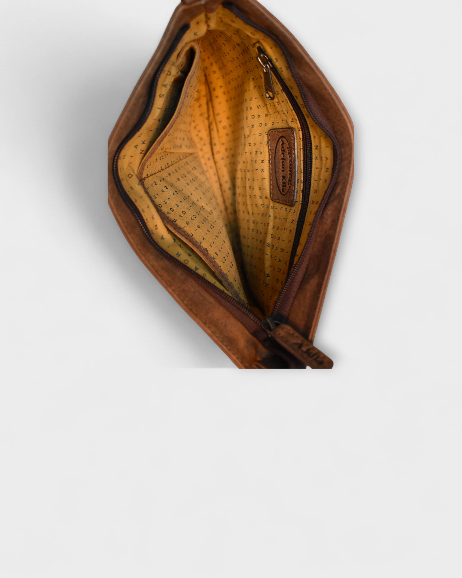 Main compartment with zipper closure, featuring one zippered pocket and two open pockets